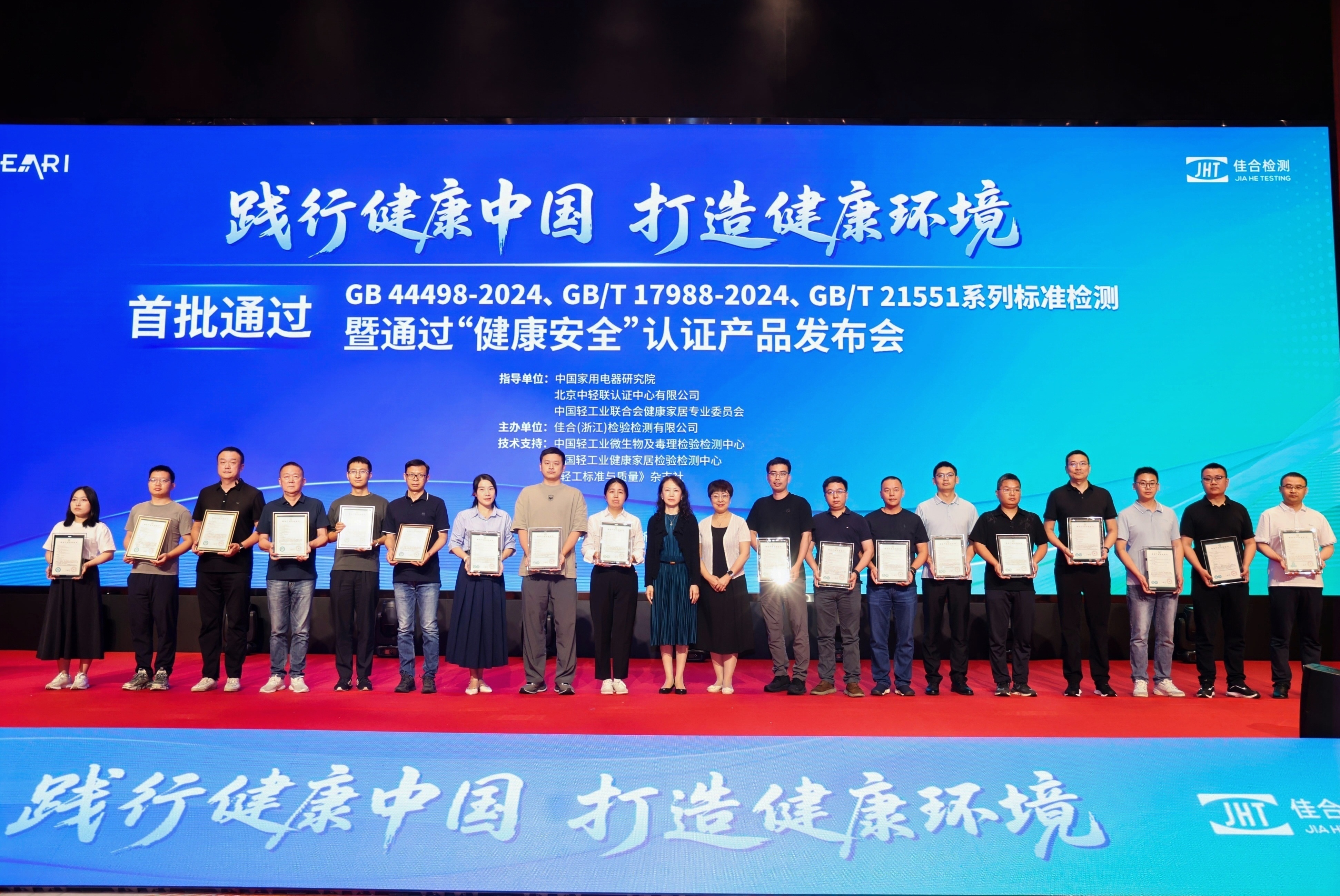 2025年7月8日,由中國家用電器研究院、北京中輕聯認證中心有限公司、中國輕工業聯合會健康家居專業委員會指導,佳合(浙江)檢驗檢測有限公司主辦的以“踐行健康中國,打造健康環境”為主題的首批通過“健康安全”認證產品發布會在浙江慈溪順利召開。此次發布會,家樂事從近百家品牌中脫穎而出,與海爾、美的、安吉爾等行業巨頭一同首批入選“健康安全”認證,展現了家樂事產品的高品質水準。